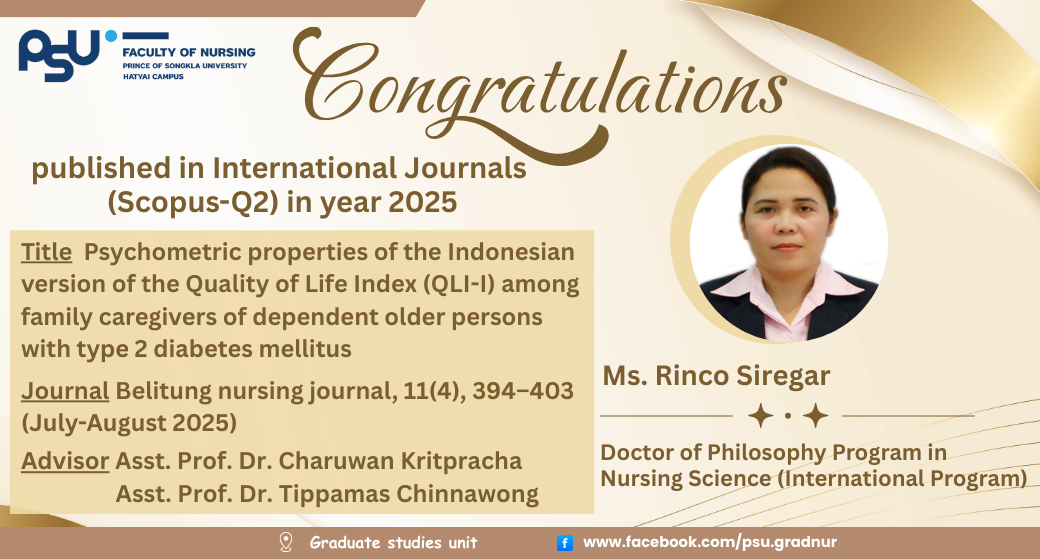 🎉 Congratulations to Ms. Rinco Siregar, a doctoral student in the Doctor of Philosophy Program in Nursing Science (International Program), for her publication in international Journals (Scopus-Q2) in the year 2025