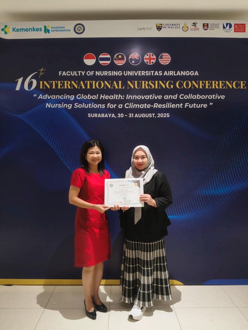 เมื่อวันที่ 30 - 31 สิงหาคม 2568 ผศ. ดร.ทิพมาส ชิณวงศ์ ได้รับเชิญเป็นวิทยากรบรรยายในหัวข้อ Application of eastern wisdom to promote well being of adults and older persons สำหรับงานประชุมวิชาการนานาชาติ the 16th Faculty of Nursing, Universitas Airlangga International Nursing Conference: "Advancing Global Health: Innovative and Collaborative Nursing Solutions for a Climate-Resilient Future" จัดโดย Faculty of Nursing, Universitas Airlangga ประเทศอินโดนีเซีย