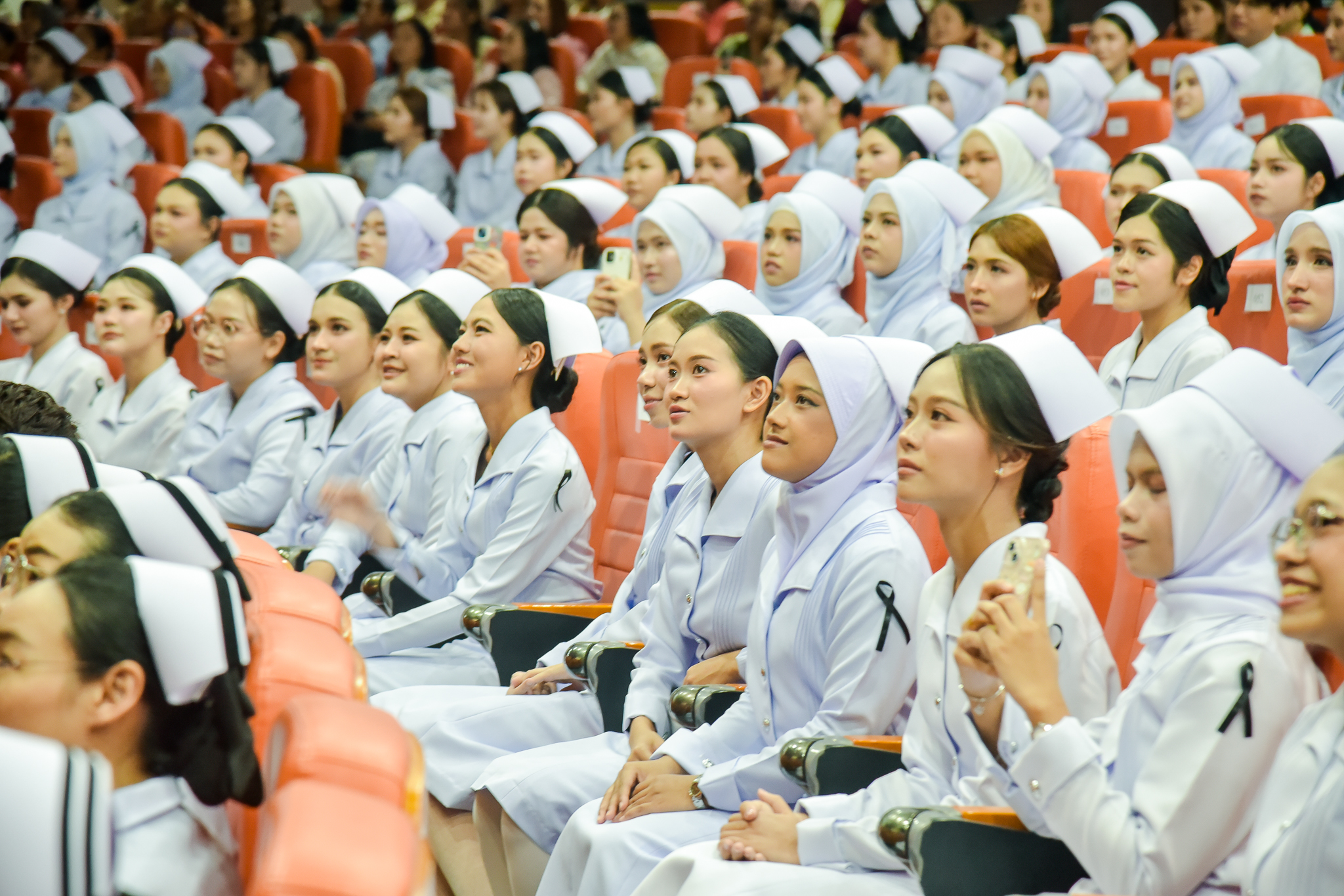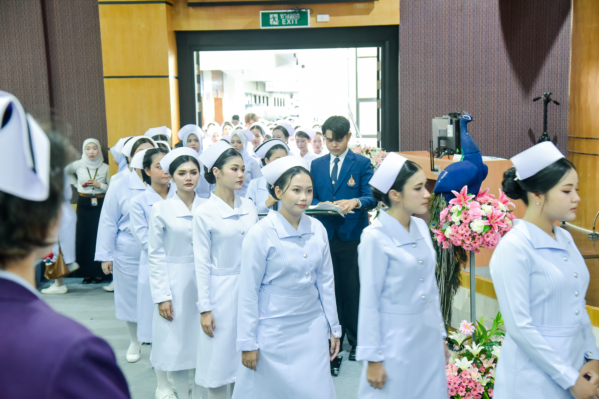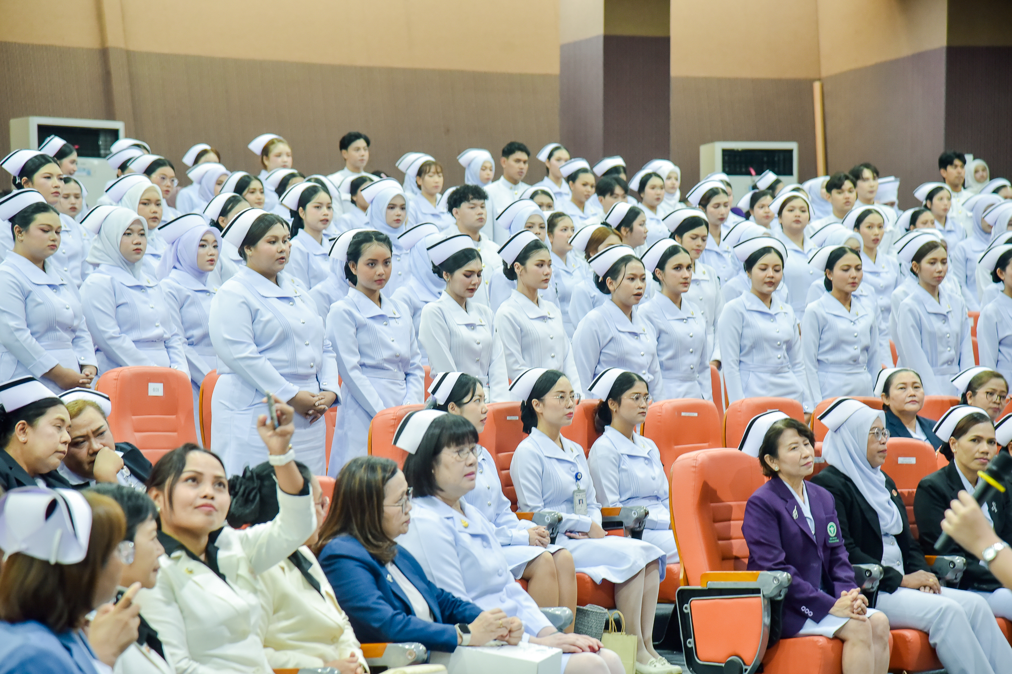 คณะพยาบาลศาสตร์ จัดพิธีปัจฉิมนิเทศ รับขีดหมวกและเข็มสถาบัน ประจำปีการศึกษา 2568